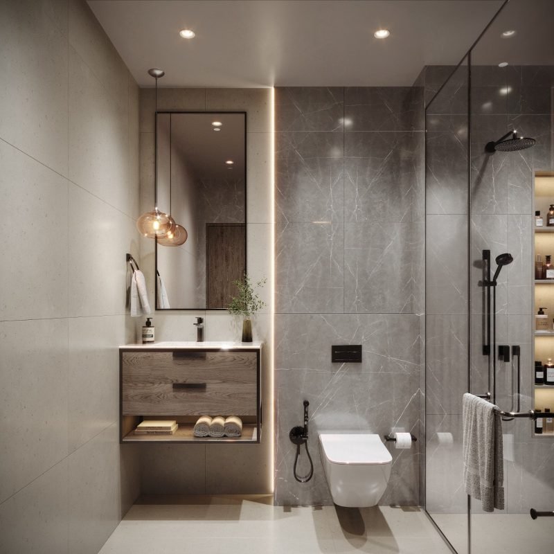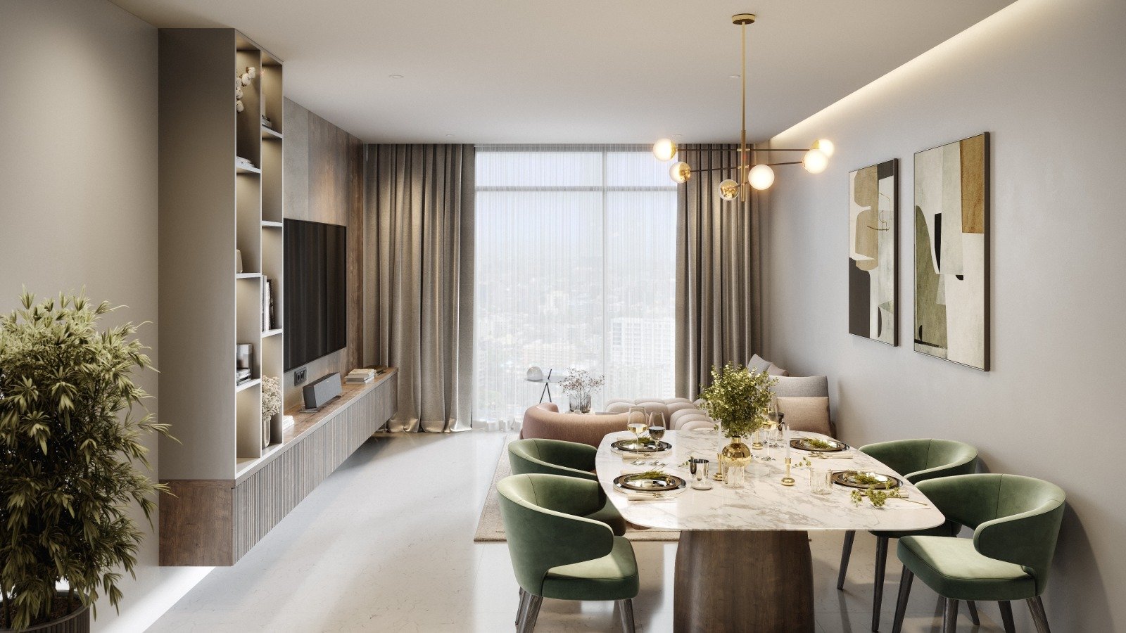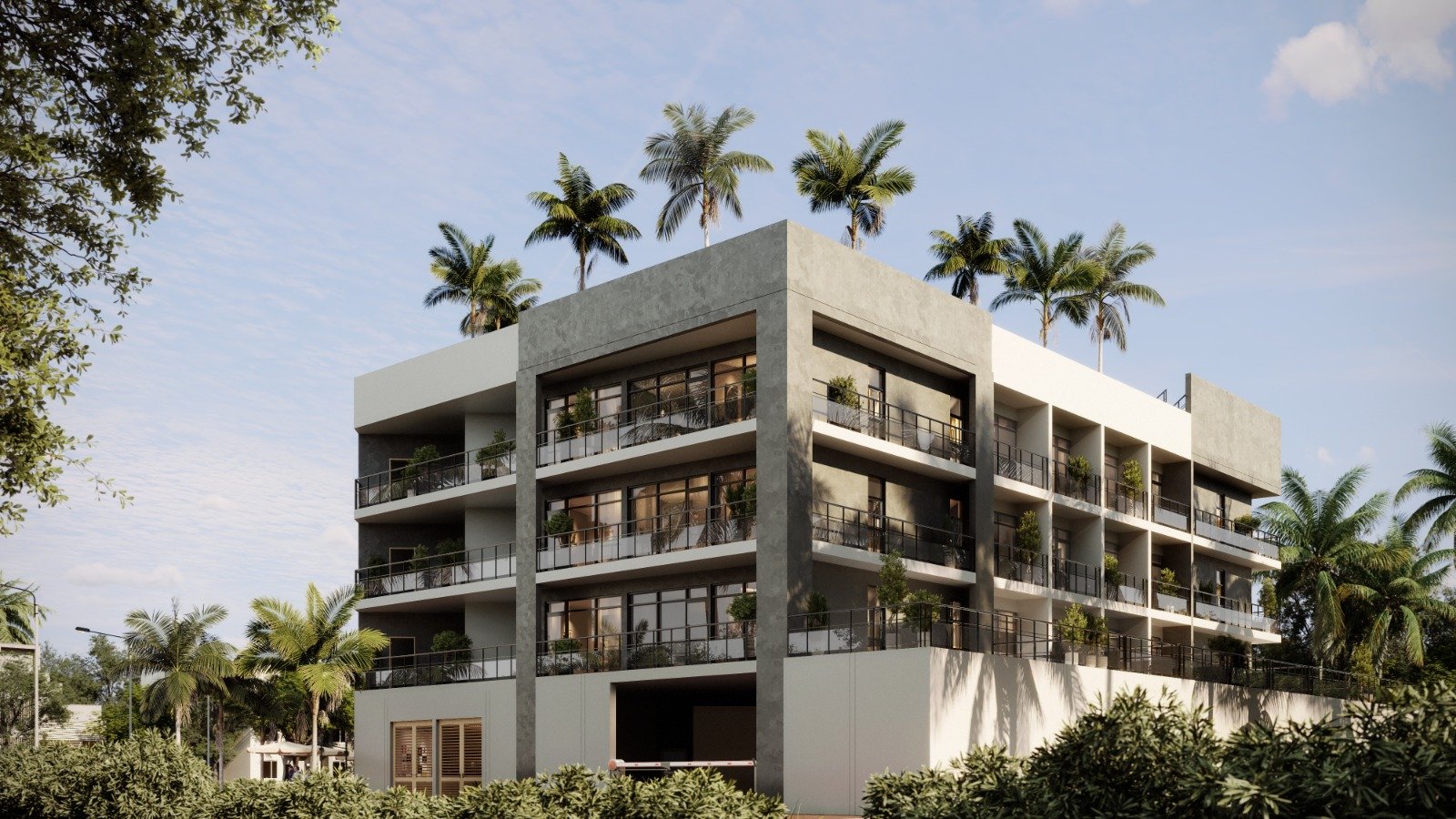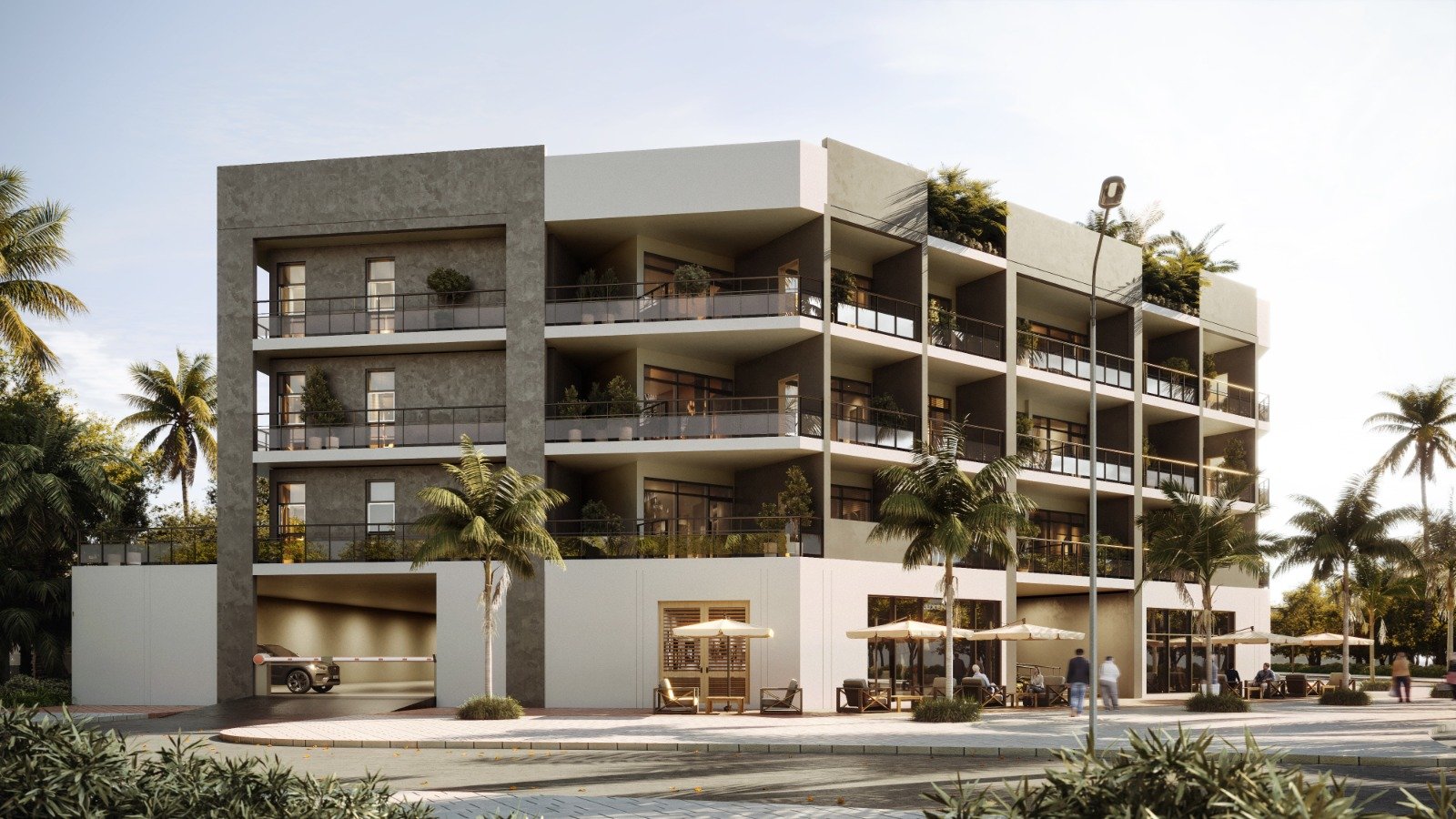 This residential building showcases a modern urban design with clean lines, layered horizontal volumes, and recessed balconies that create depth and rhythm across the façade. Expansive glazing ensures natural light and openness, while integrated planters and greenery soften the architecture and enhance its connection to nature. At street level, retail and café spaces activate the frontage, fostering a lively pedestrian environment, while landscaped rooftop terraces extend the living experience outdoors. Combining functionality with contemporary elegance, the design reflects a refined approach to apartment living that balances modern aesthetics with vibrant community life.